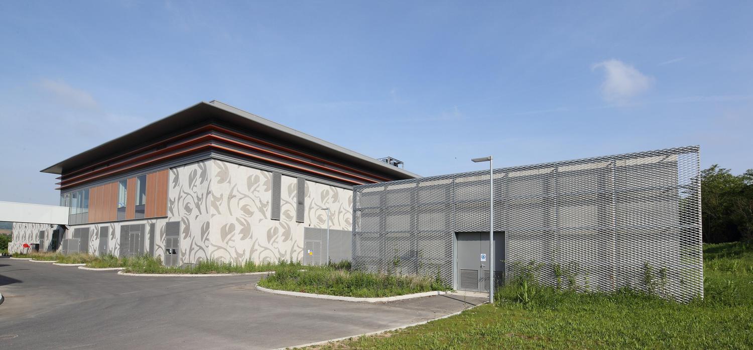 L’opération consiste en l’extension de la station d’épuration de Cergy Neuville. La nouvelle unité de traitement des eaux est située dans le prolongement du bâtiment technique existant auquel elle est reliée par une passerelle. L’identité architecturale de ce nouveau bâtiment s’exprime par des murs en béton brut imprimés de motifs de feuillages lasurés.
